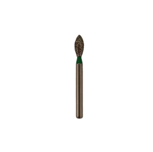Рабочая часть в форме бутона с диаметром сечения 2,3 мм и грубой зернистостью алмазного абразива обеспечивает эффективное удаление материала. Стальной хвостовик гарантирует прочную фиксацию в наконечнике и может вращаться на частоте до 450 тыс. об/мин без биения.
